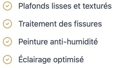 Spécialistes des plafonds, nous maîtrisons les techniques pour obtenir des résultats uniformes et lumineux, même sur les surfaces les plus difficiles d'accès.